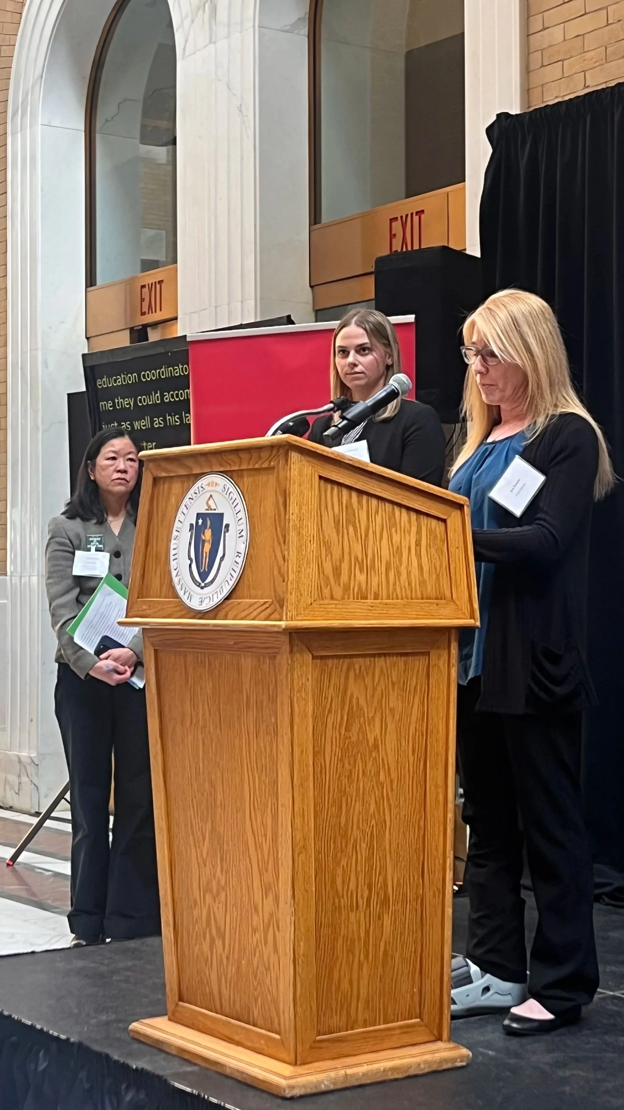At the 27th Annual Walk to the Hill for Civil Legal Aid, CLCM Attorney Alyssa Schnoor and Jen Fowler, parent of a CLCM client, shared a powerful story about what access to civil legal aid can mean for children and families navigating complex systems. Advocates from across Massachusetts gathered at the State House for the event to urge continued public investment in civil legal aid. Organized by the Equal Justice Coalition (EJC), the event engages legislators on the essential role civil legal aid plays in ensuring access to justice across the Commonwealth.